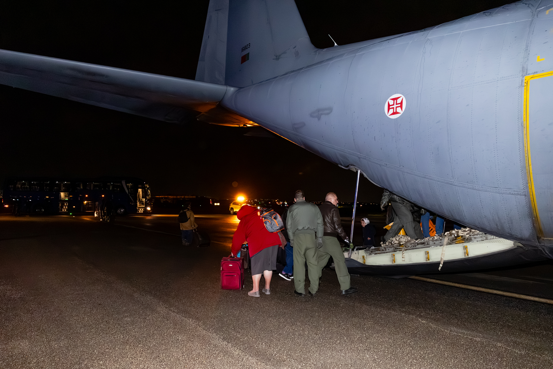Na sequência de uma solicitação do Ministério dos Negócios Estrangeiros ao Ministério da Defesa Nacional, o avião da Força Aérea aterrou pelas 05h18 desta madrugada com 39 passageiros, dos quais 24 cidadãos portugueses e 15 cidadãos estrangeiros provenientes de França, Grécia, Brasil e Israel.