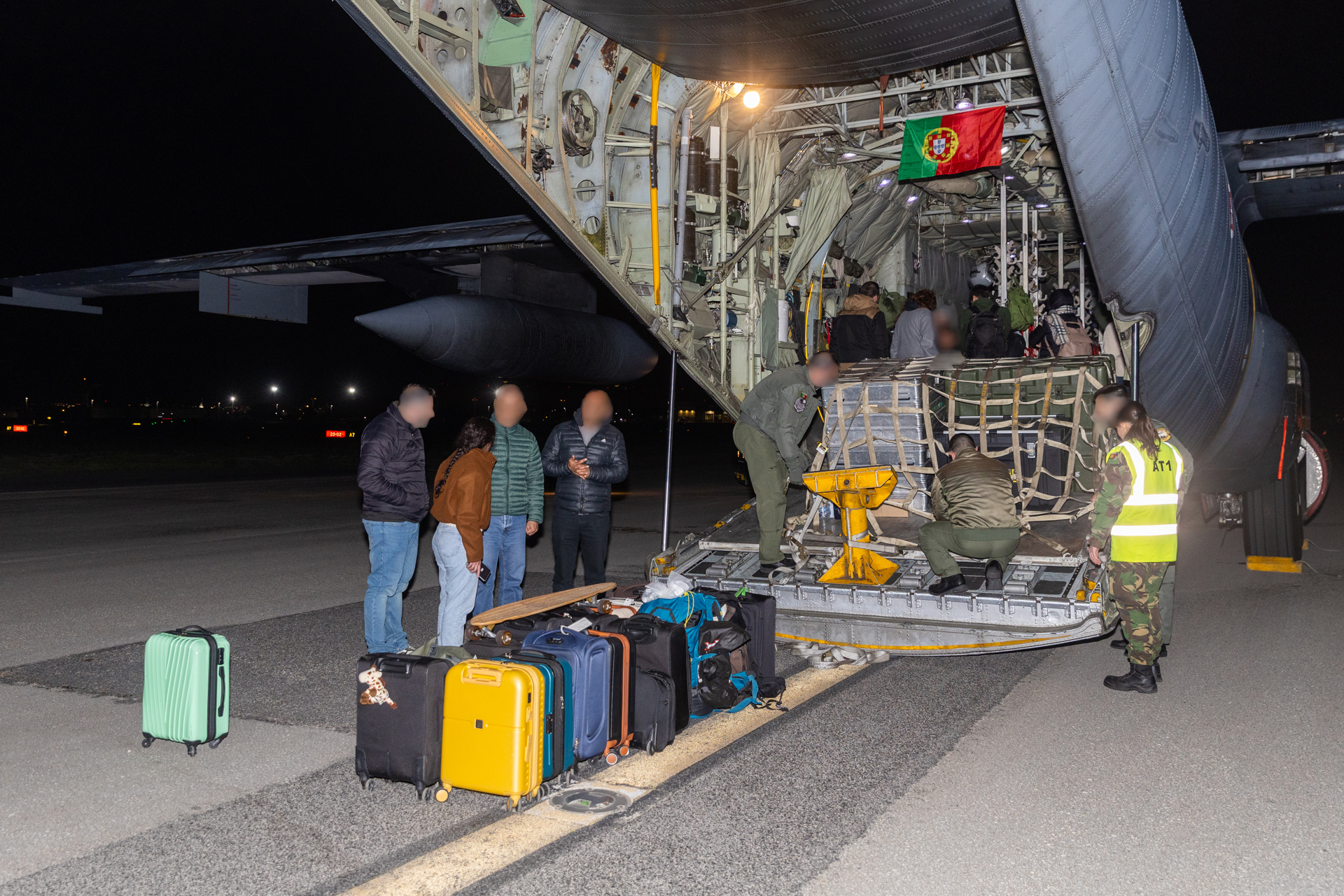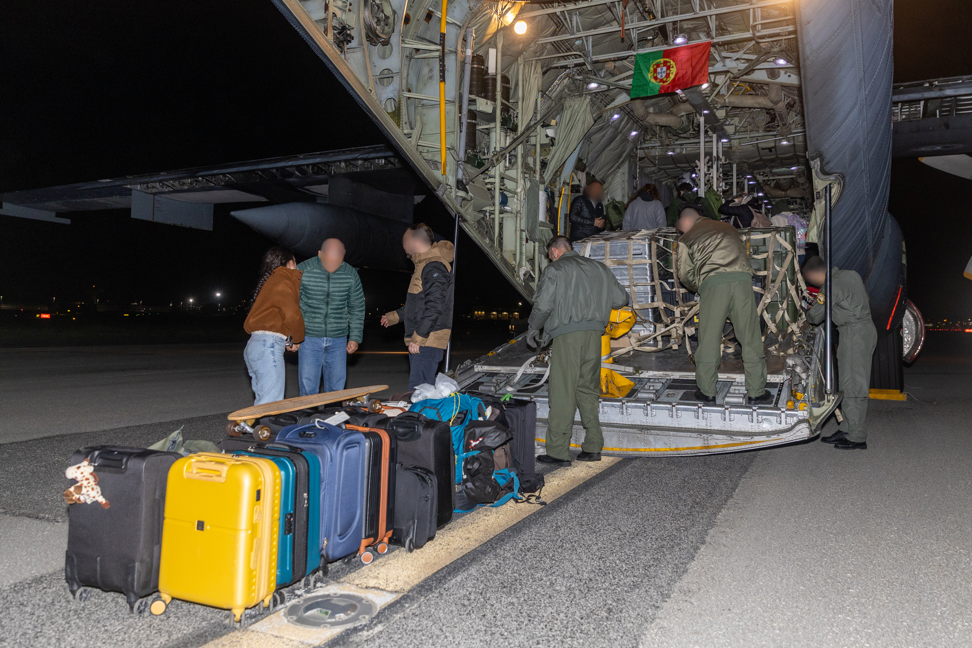 A bordo seguiram 54 cidadãos portugueses e sete cidadãos estrangeiros, provenientes do Canadá, Reino Unido e Coreia do Sul, numa operação conduzida para garantir o regresso em segurança de pessoas que se encontravam na região.