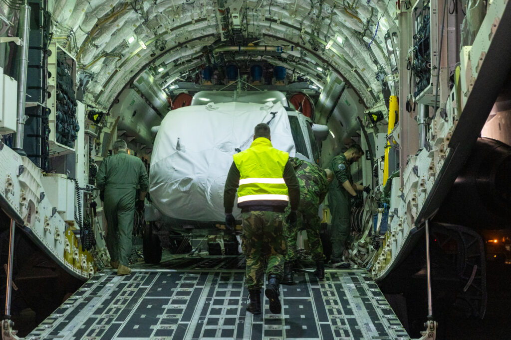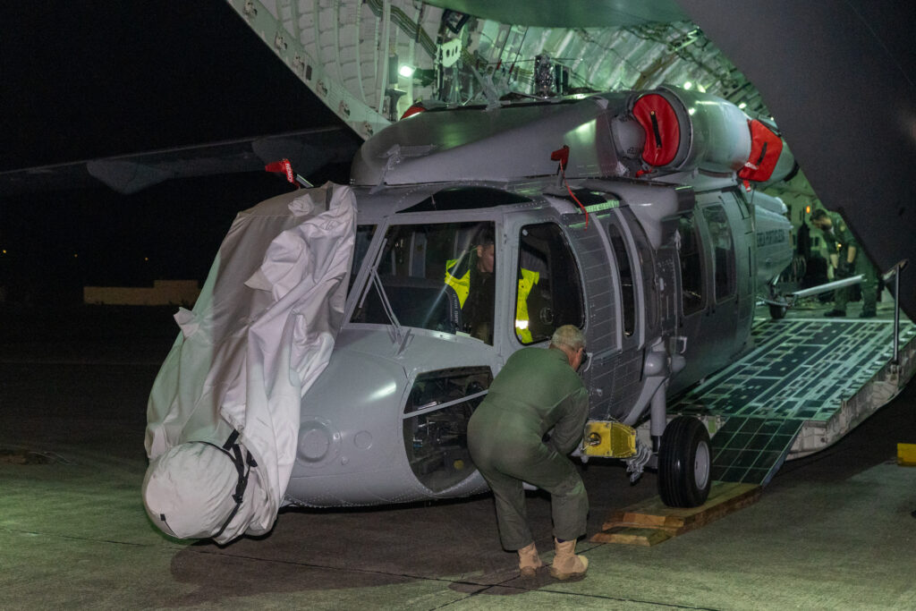 Este helicóptero foi transportado num avião KC-390 da Força Aérea, que partiu quinta-feira, 19 de fevereiro, com destino a Huntsville, Alabama, nos Estados Unidos da América (EUA), tendo realizado escalas técnicas na Base Aérea N.º 4, nas Lajes, e em Rhode Island, nos EUA. Hoje, 21 de fevereiro, o KC-390 descolou de Rhode Island com destino à BA8. Nas próximas semanas, o helicóptero passará por uma fase de testes até à aceitação final pela Força Aérea.