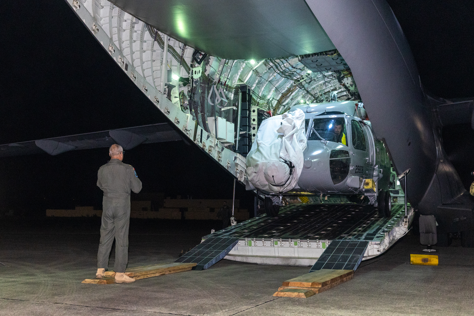 Este helicóptero foi transportado num avião KC-390 da Força Aérea, que partiu quinta-feira, 19 de fevereiro, com destino a Huntsville, Alabama, nos Estados Unidos da América (EUA), tendo realizado escalas técnicas na Base Aérea N.º 4, nas Lajes, e em Rhode Island, nos EUA. Hoje, 21 de fevereiro, o KC-390 descolou de Rhode Island com destino à BA8. Nas próximas semanas, o helicóptero passará por uma fase de testes até à aceitação final pela Força Aérea.