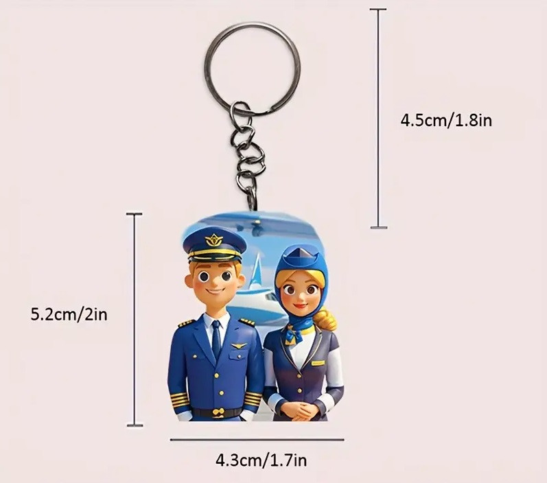 Porta-chaves em acrílico. Design de piloto e tripulante de cabine.